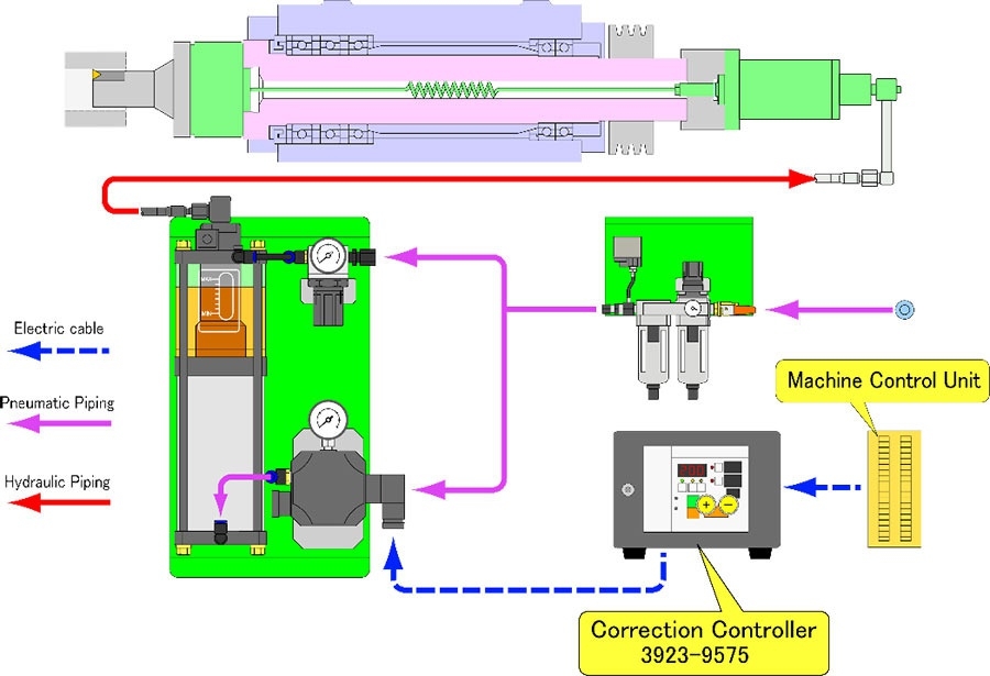It accepts plus/minus correction signals based on the five classification judgment signals from the measuring instrument through the machine control unit.