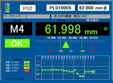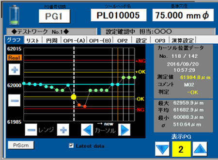 ランチャート(同一プログラムでの最新24ヶの測定値)、5分類または7分類の判定表示 - ノギス機能